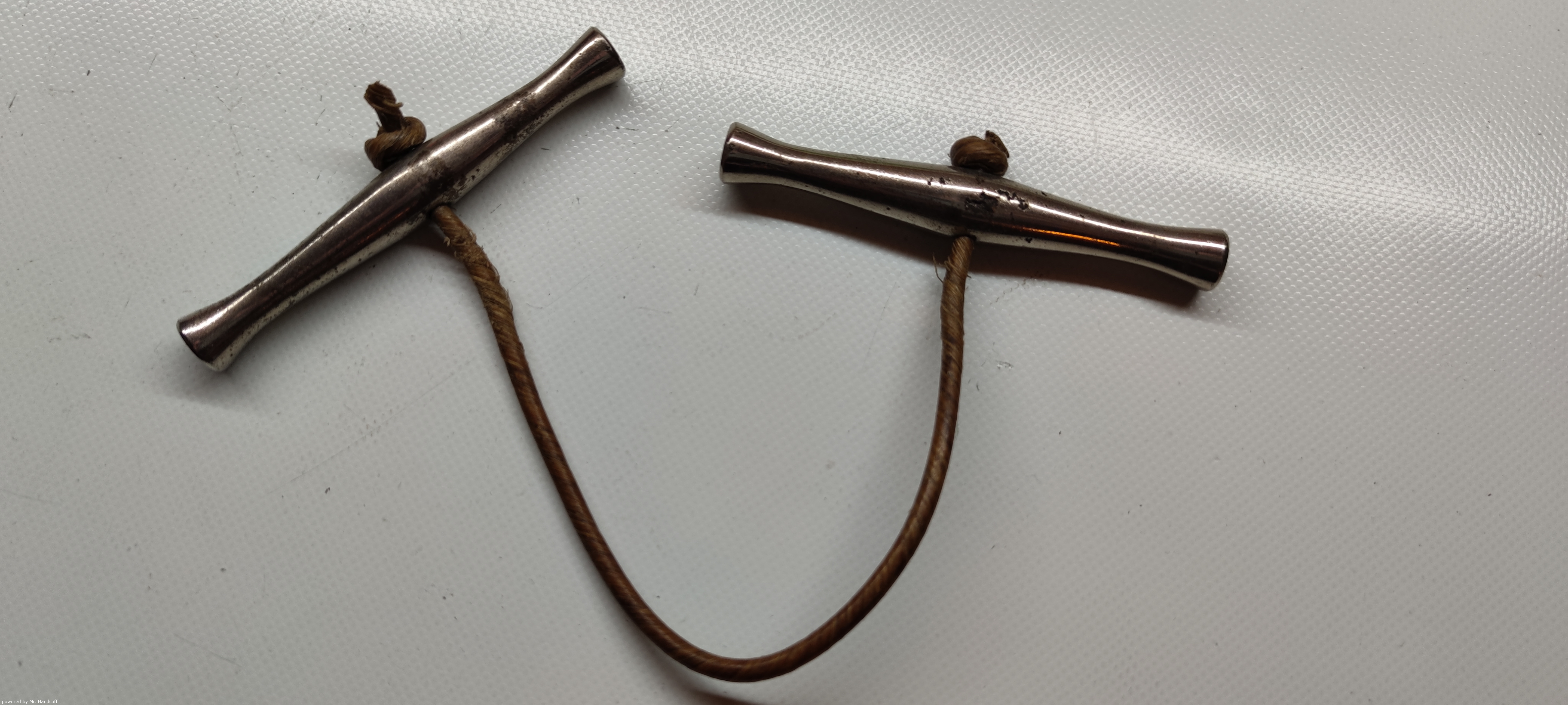 > Abfuehrmittel Unbekannt Griff Metall an gedrehter Lederschnur > Image