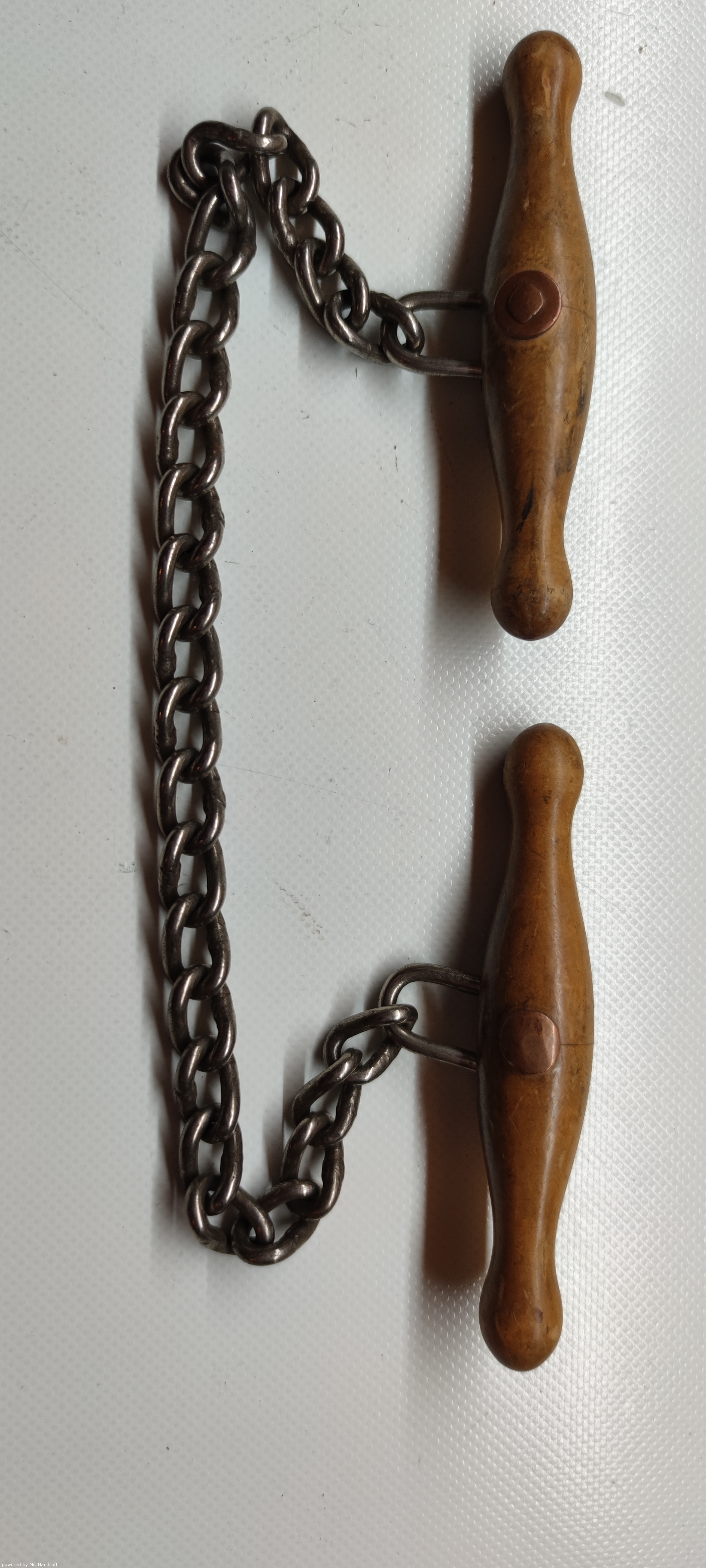 > Abfuehrmittel Unbekannt Griff helles Holz mit Kupferniet an Kette glaenzend > Image