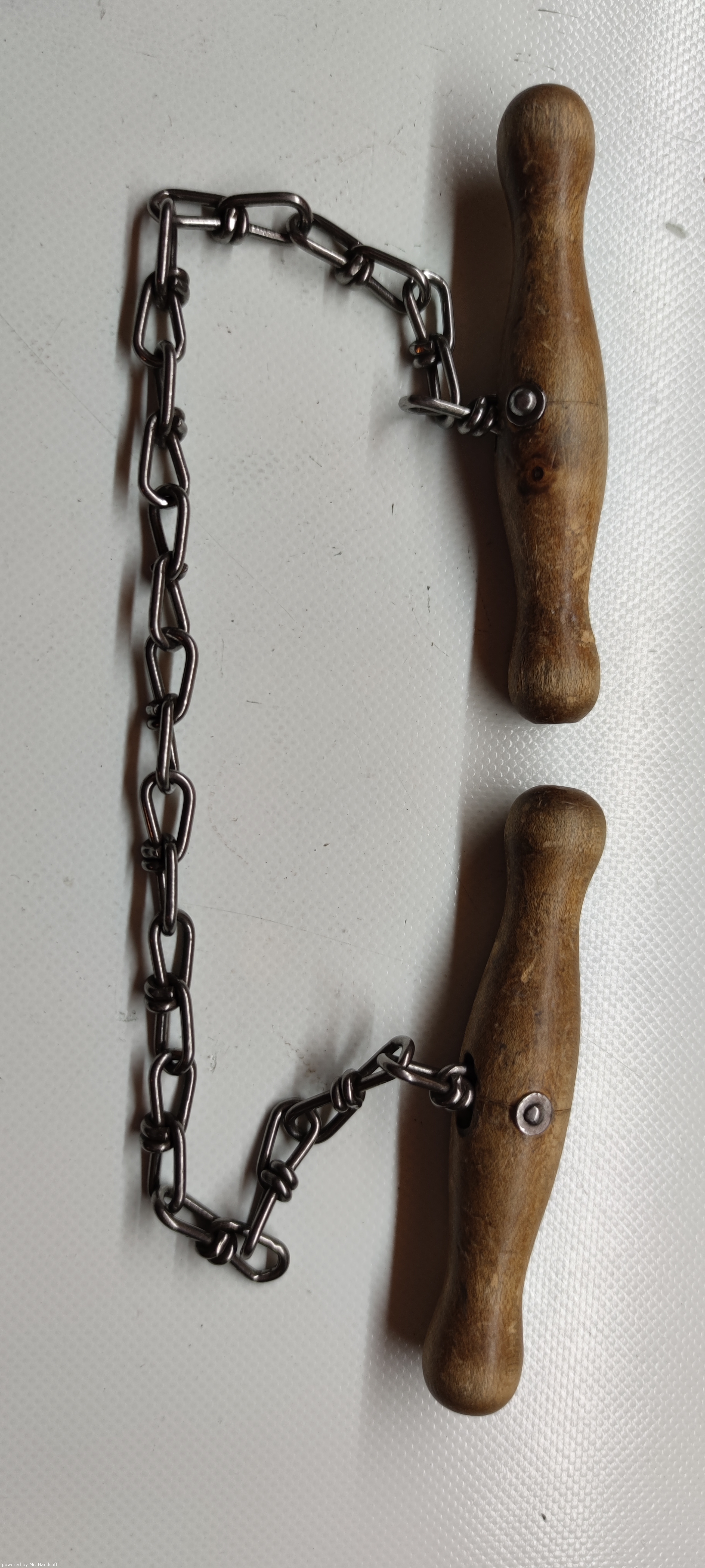 > Abfuehrmittel Unbekannt Griff helles Holz mit Metallniet an Kette glaenzend > Image