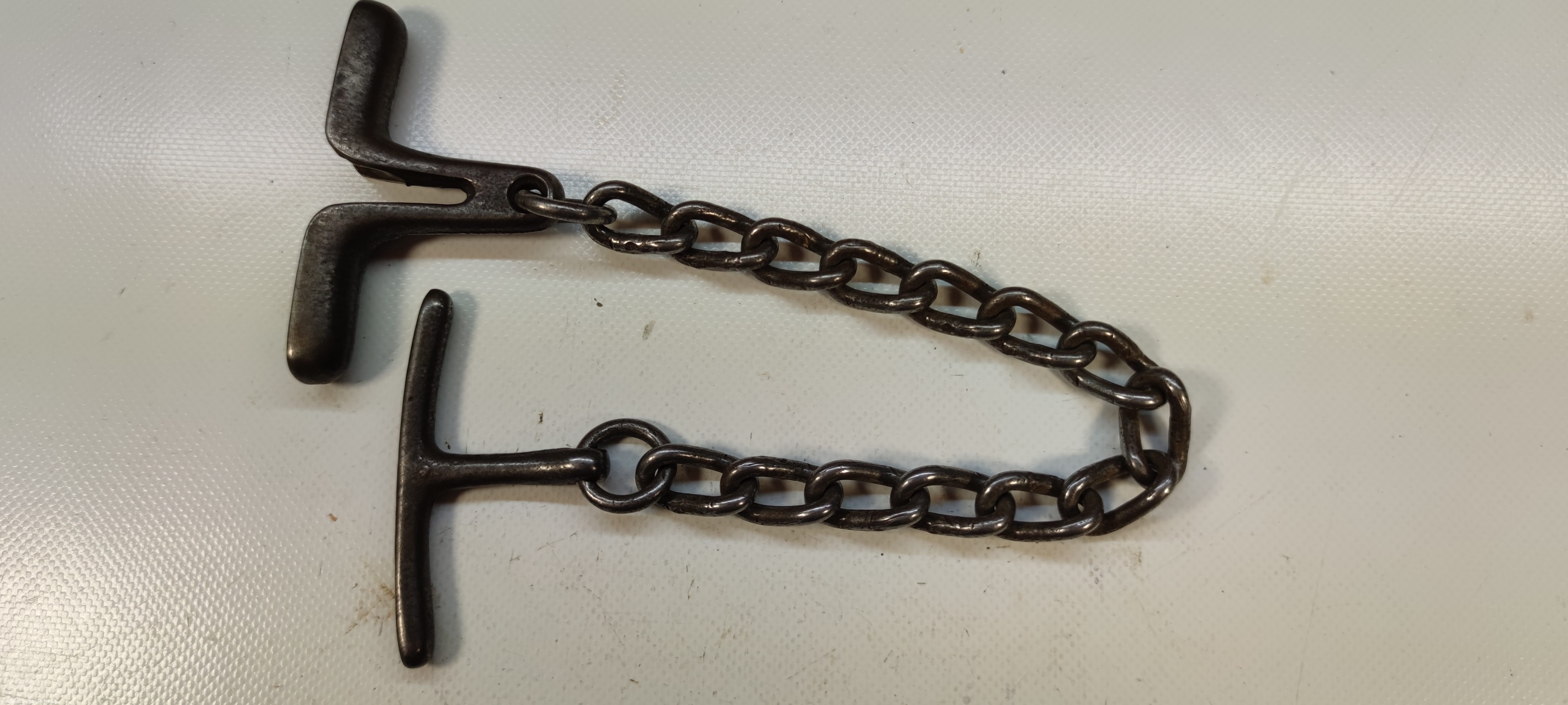 > Abfuehrmittel Unbekannt T-Griff Metall an gedrehter schwerer Kette > Image