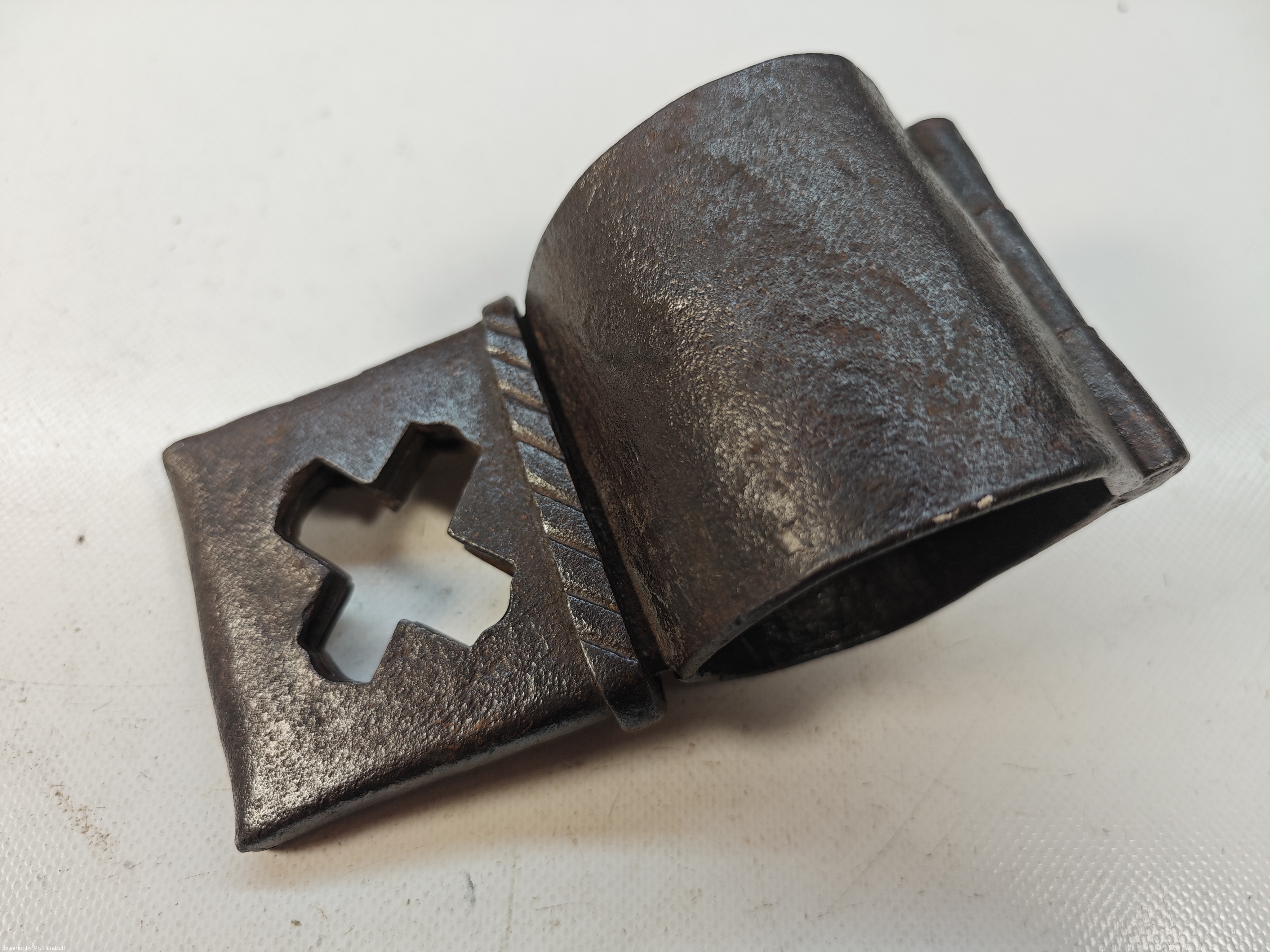 Mittelalterliche Handfessel einzeln mit Tuelle gestanztes Kreuz