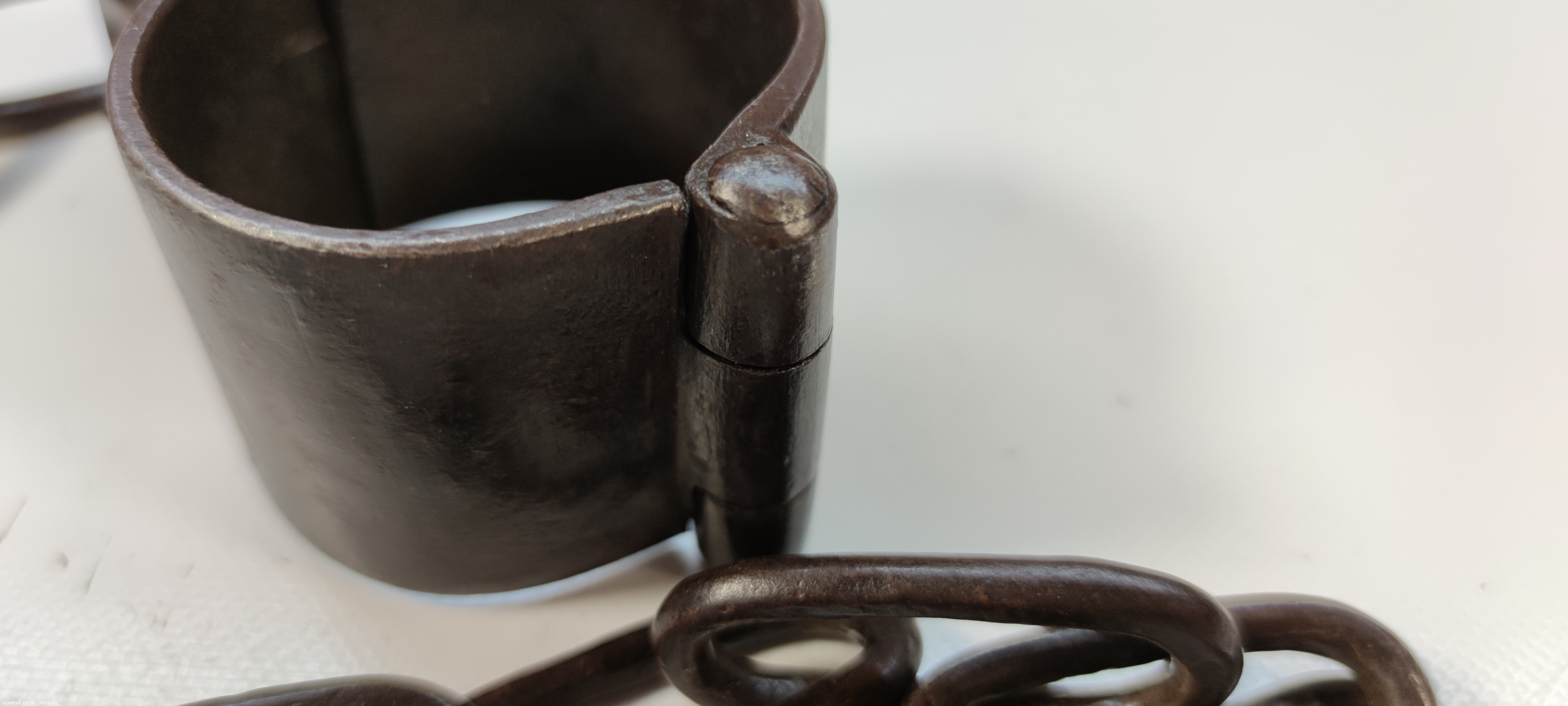 Mittelalterliche Handfessel einzeln mit Tuelle und Kette